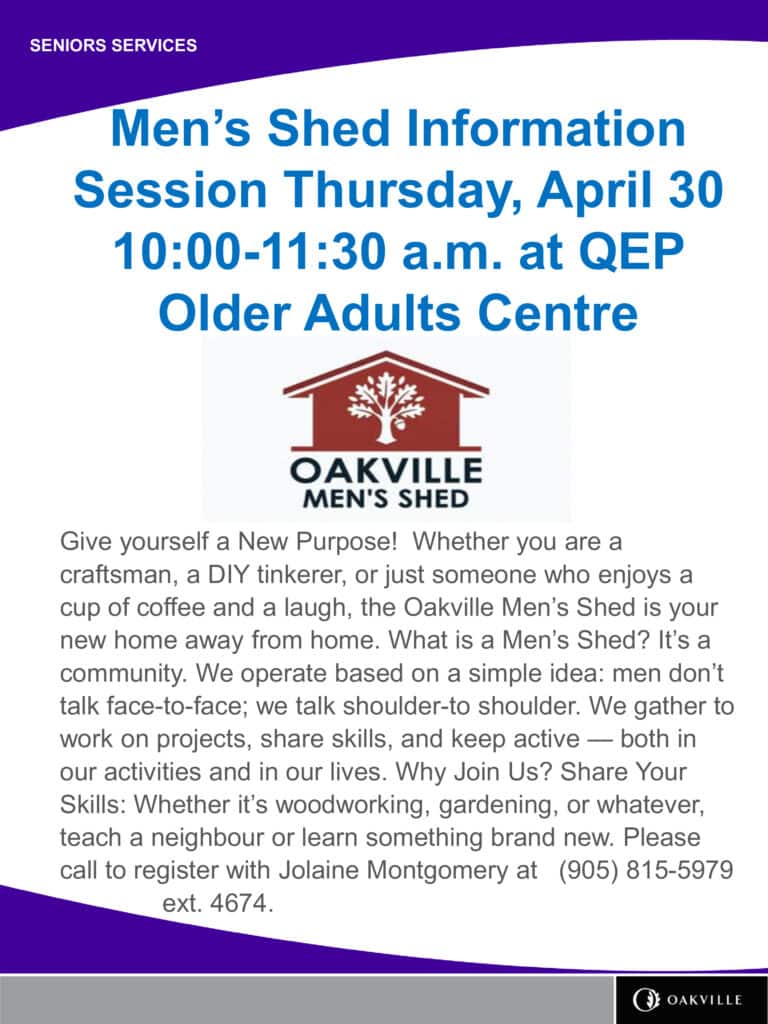 Oakville Men’s Shed: Information Session April 30, 2026Uncategorized / By Keith Hancock / April 23, 2026